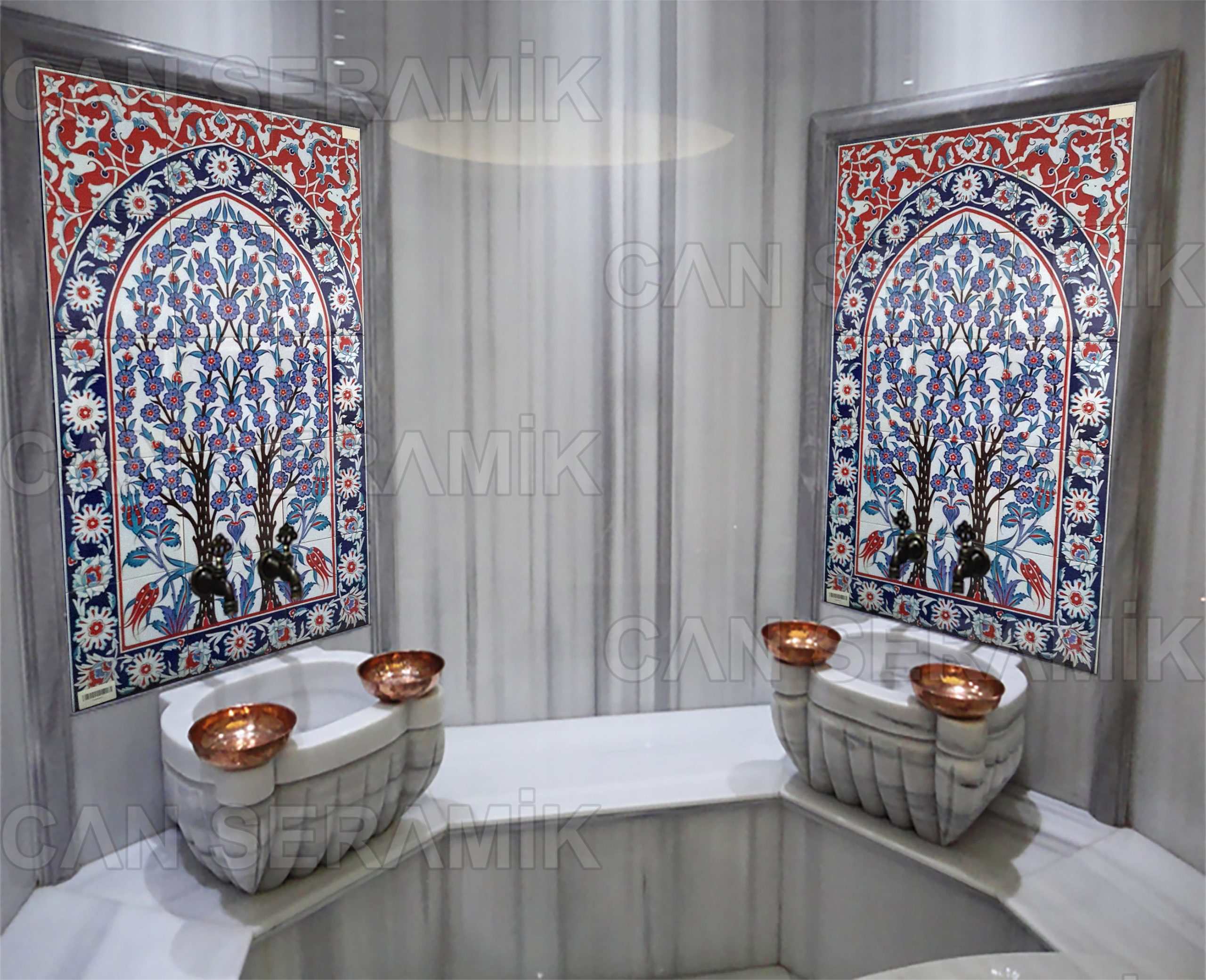 - Türk hamamlarında kurna arkası çini pano veya kurna üstü çini pano olarak,
