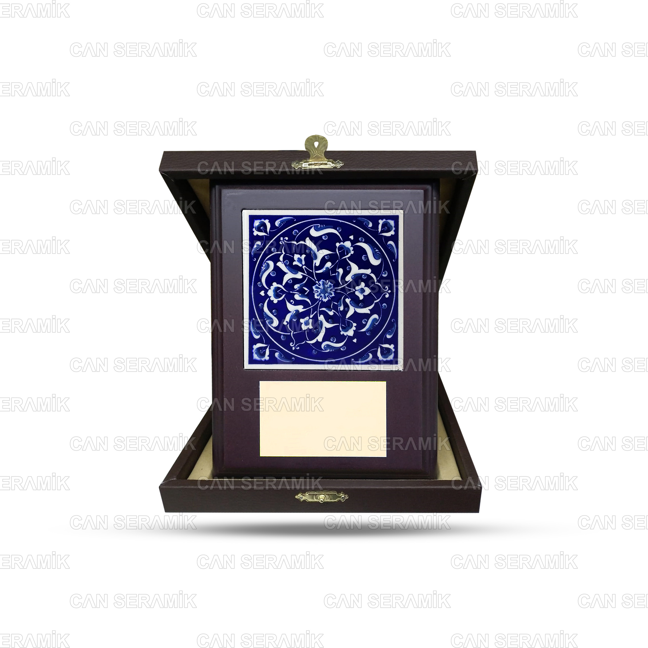 El Yapımı Plaket Çini ürünümüzün alt yapısı seramiktir . 10*10 cm. ebatlarındadır . Üzerindeki desenler ise klasik İznik Çinisi ve Kütahya Çinisi desenleridir . Çizim ve boyalamaları tek tek el ile yapılmaktadır . Ürün önce çelik preste seramik toprağı (granülü) ile basılır . Baskısı yapılan karo üzerine bisküvi haline gelmeden yani pişirilmeden direkt olarak çizim yapılmaz ve boya sürülmez . Bisküvi haline gelmesi için yaklaşık olarak 1050 derecelerde pişirilir . Bu işlemden sonra karo çizime ve boyamaya hazır hale gelir . Ürünümüzün üzerindeki çizimler ve boyamalar tek tek el ile yapılmaktadır . Bundan dolayı üretimi biraz zaman almaktadır .
