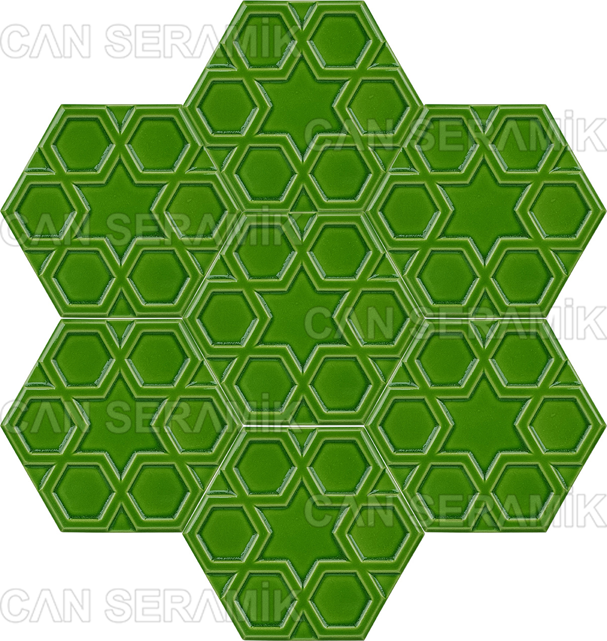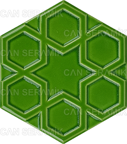 Kabartmalı Selçuklu Yıldızı Altıgen Çini – Fıstık Yeşili (15*17 cm.)